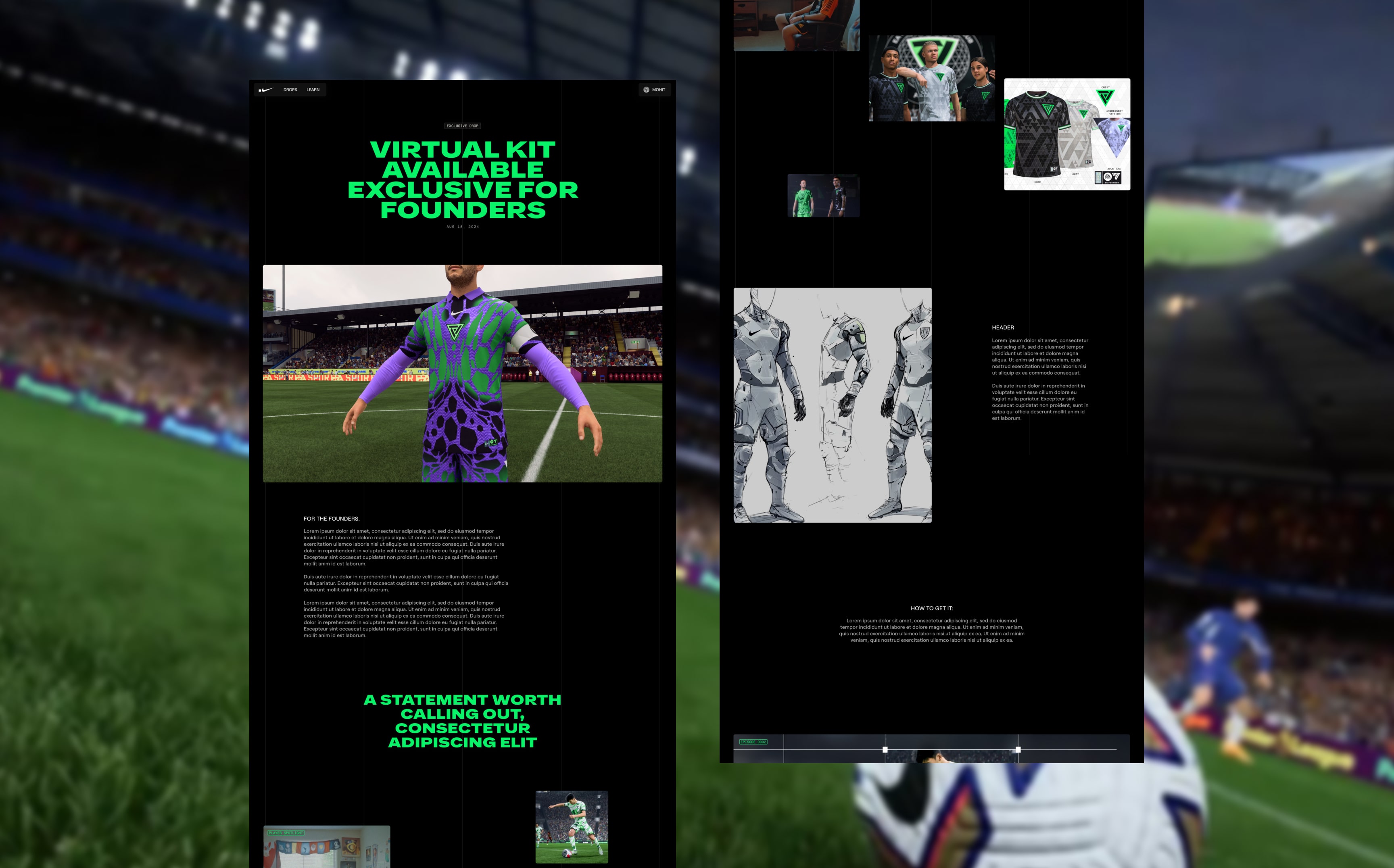 Concepts for the launch site celebrating Nike’s collab with EA FC